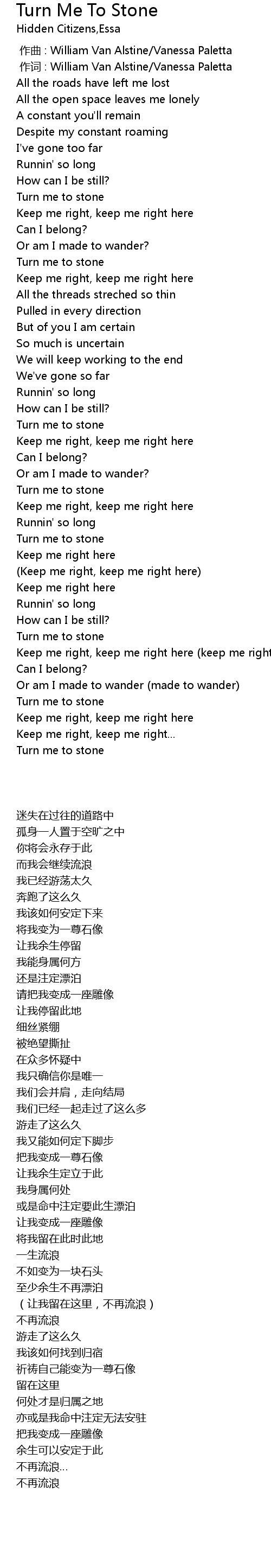 | [01:20.00] | Turn me to stone |