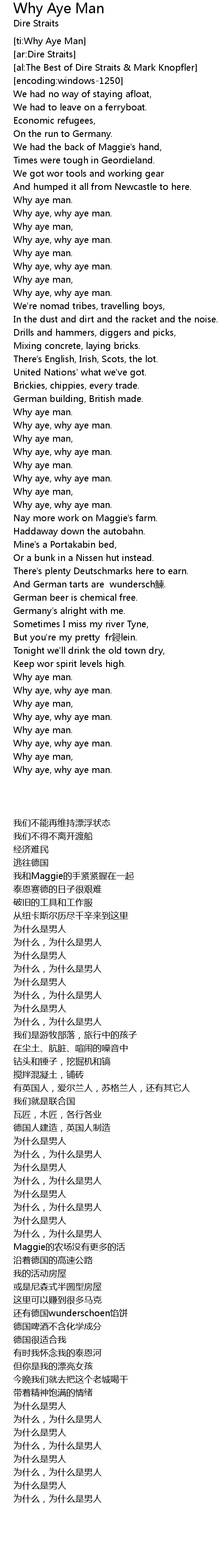 | [ti:Why Aye Man] | |
