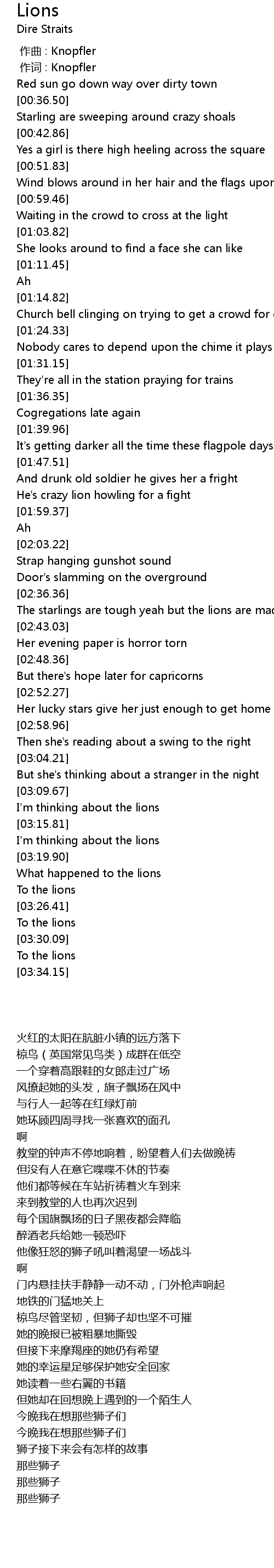 | [00:01.00] | 作词 : Knopfler |