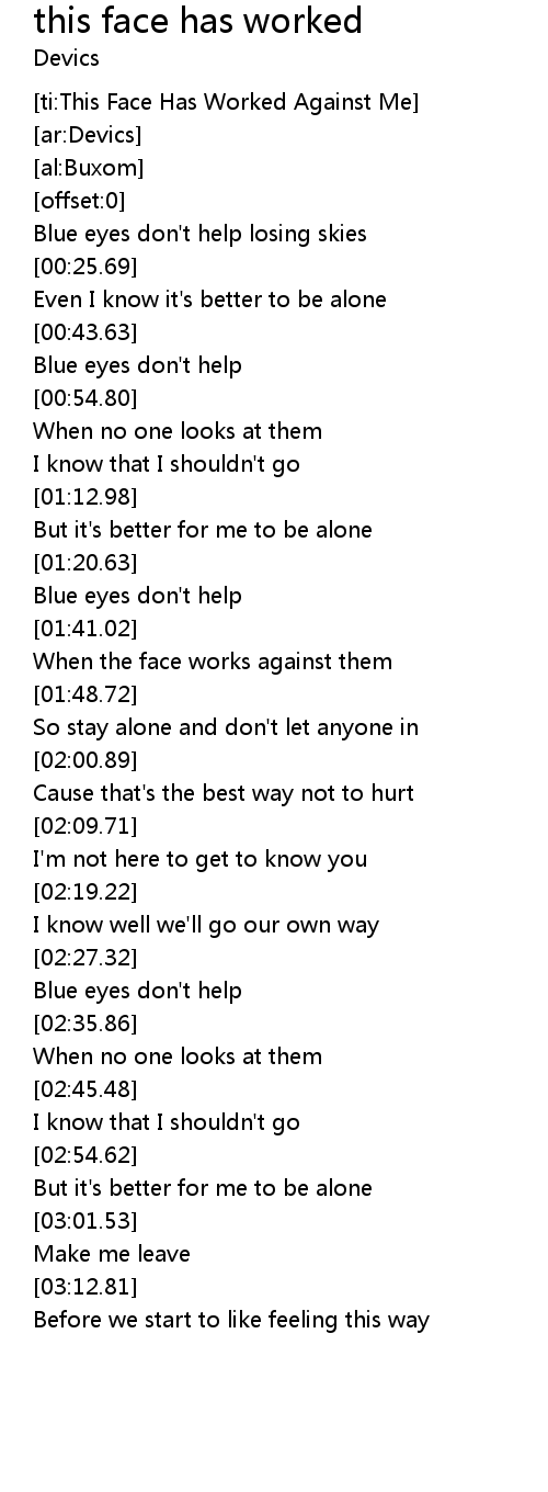 | [ti:This Face Has Worked Against Me] | |