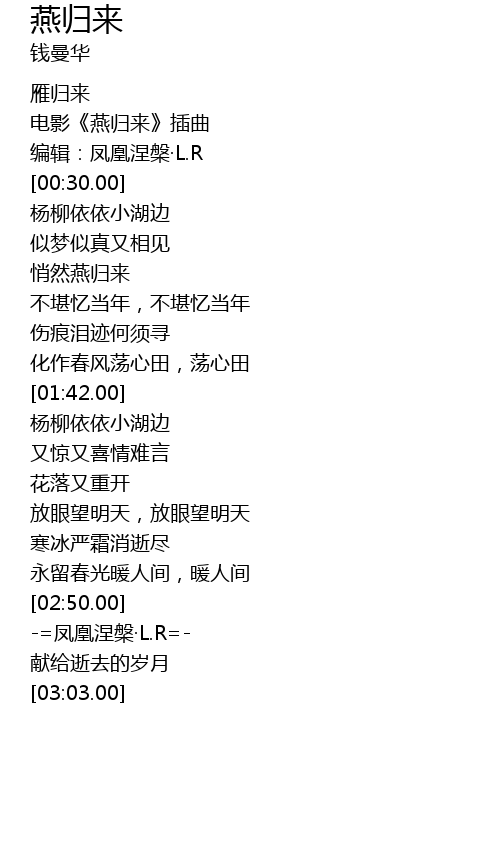| [00:10.00] | 电影《燕归来》插曲 |