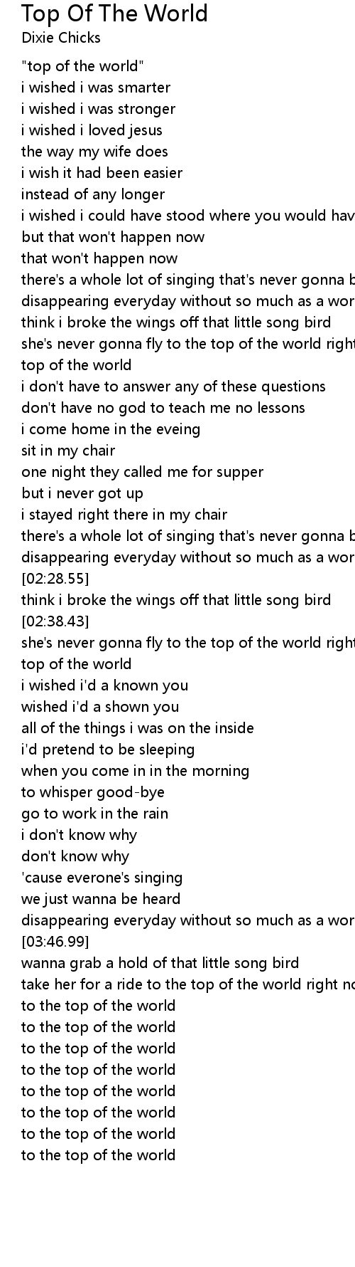 "top of the world" |