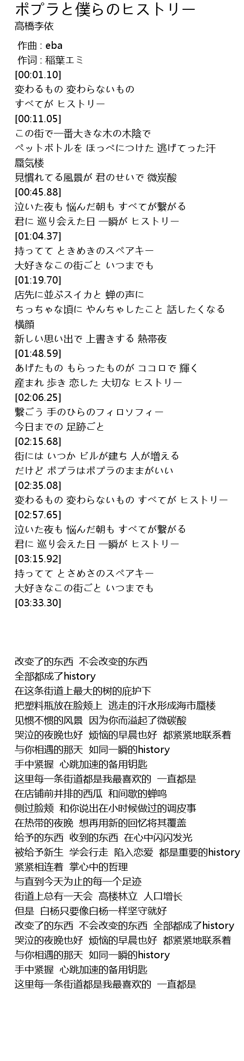 | [02:48.54] | 改变了的东西 不会改变的东西 全部都成了history |