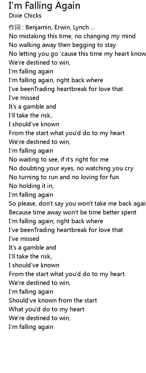 | I'm falling again, right back where | |