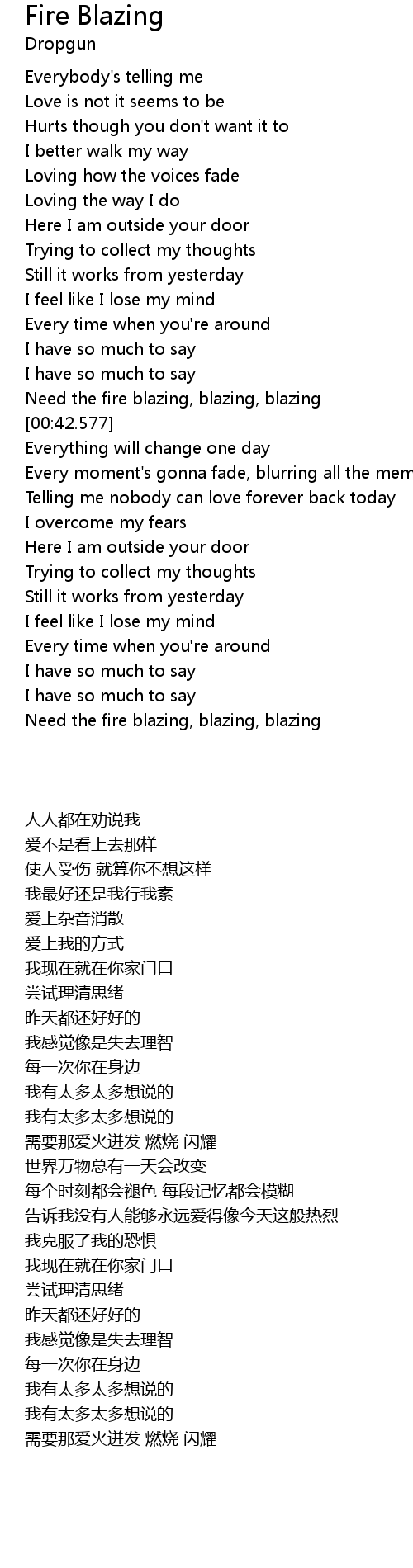 Need the fire blazing, blazing, blazing |