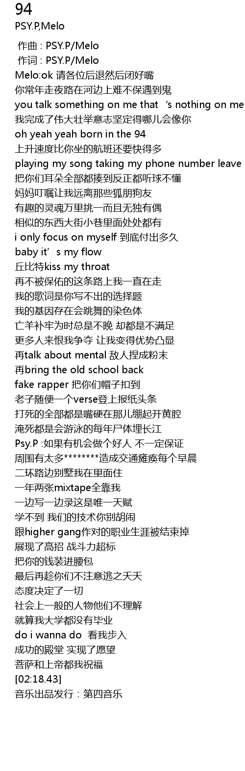 | [00:01.000] | 作词 : PSY.P/Melo |