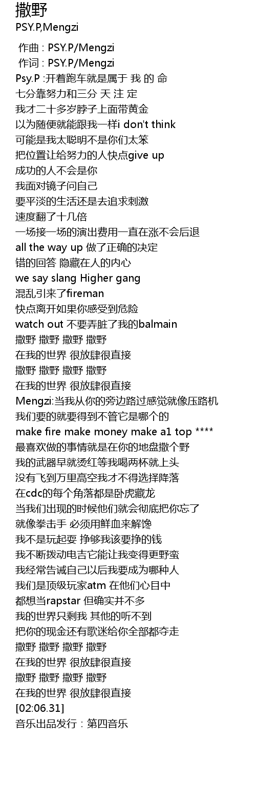 | [00:01.000] | 作词 : PSY.P/Mengzi |