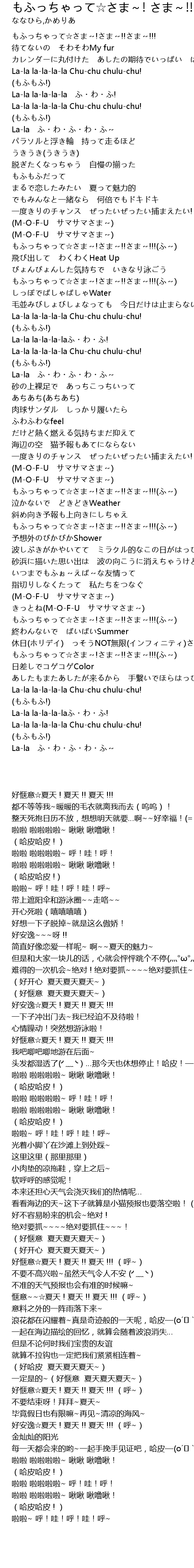 | [00:00.00] | もふっちゃって☆さま~!さま~!!さま~!!! |
