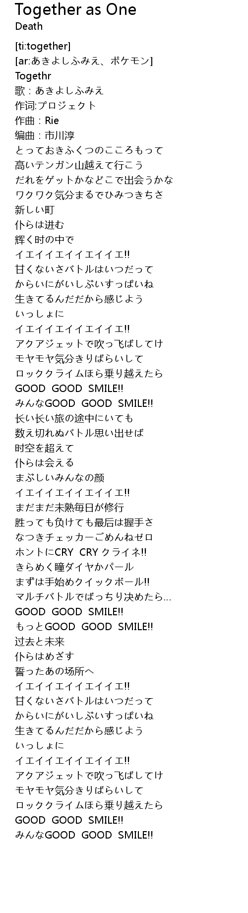 Together as One 歌词