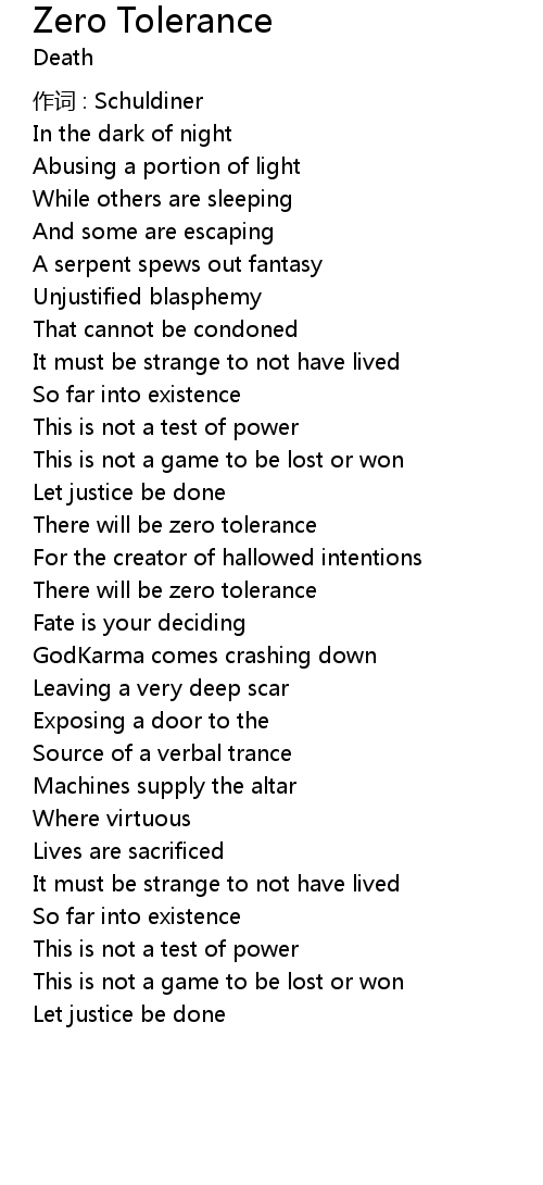 | 歌曲 | Zero Tolerance |