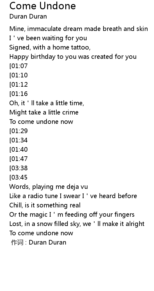 | 歌曲 | Come Undone |