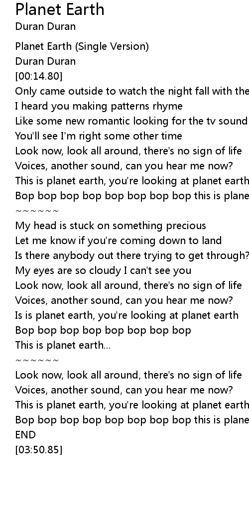 Bop bop bop bop bop bop bop bop this is planet earth |