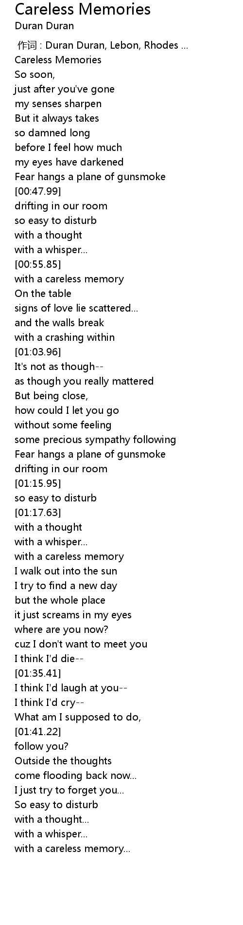 | [00:00.00] | zuò cí : Duran Duran, Lebon, Rhodes ... |