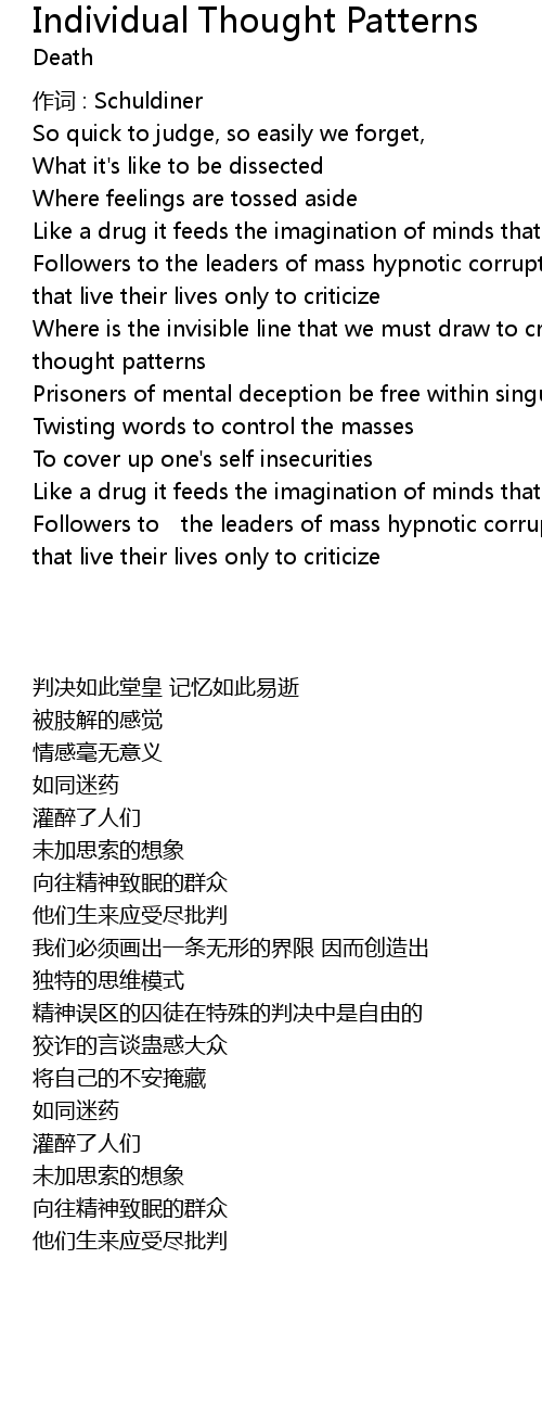 | 歌曲 | Individual Thought Patterns |