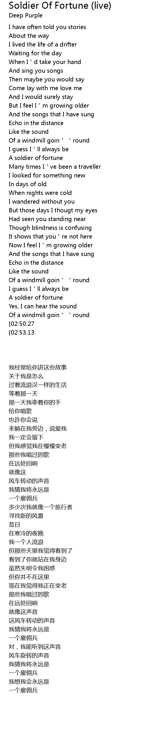 | [03:03.04][02:53.13] | A soldier of fortune |