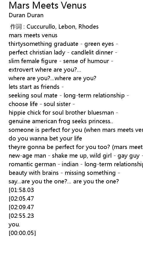 | [00:07.46] | mars meets venus |