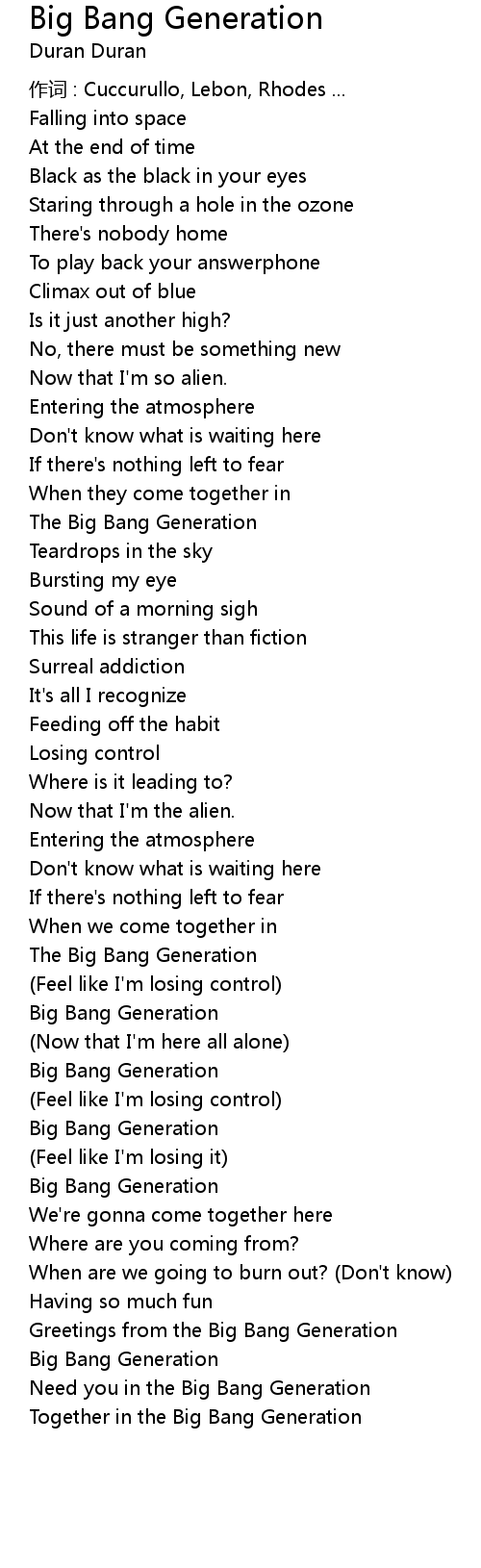 | Need you in the Big Bang Generation | |
