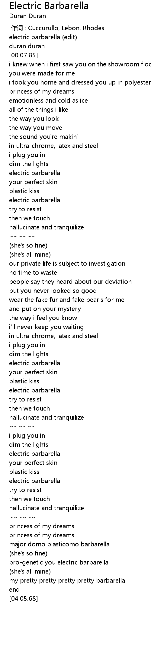 | [02:04.78] | electric barbarella |