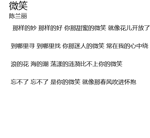 | 到哪里寻 到哪里找 你那迷人的微笑 常在我的心中绕 | |