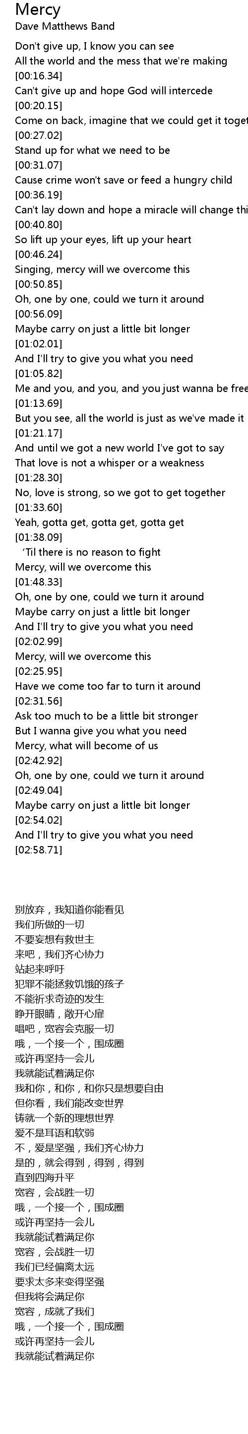 | [00:47.23] | Singing, mercy will we overcome this |