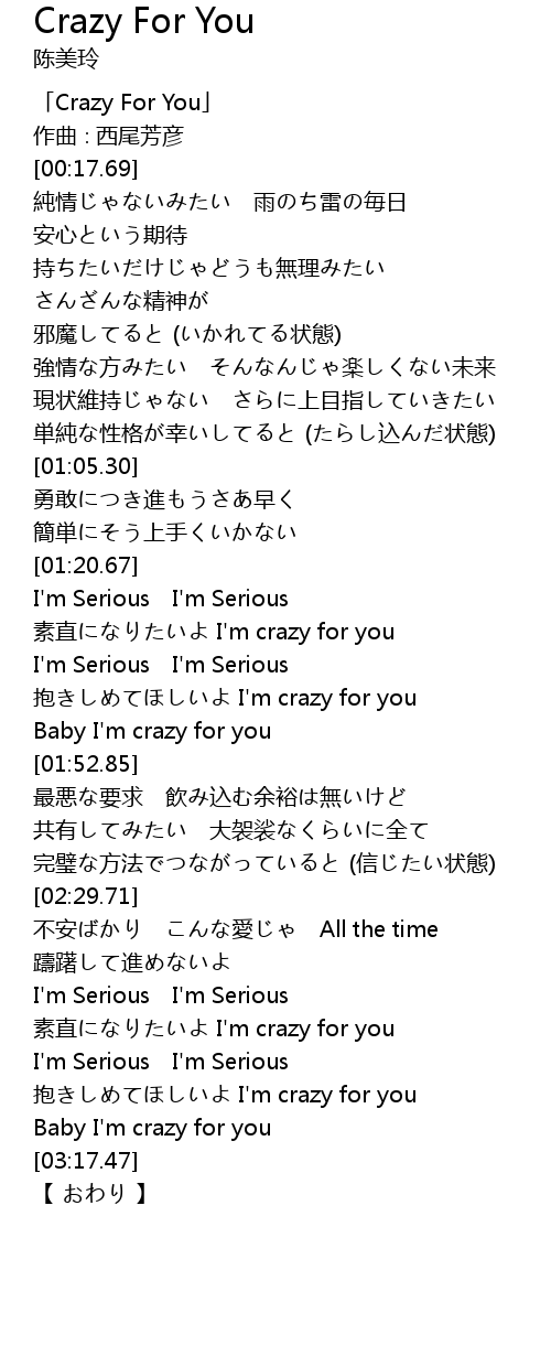 | [00:01.69] | 「Crazy For You」 |