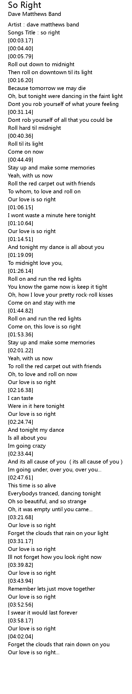 | [00:02.04] | Songs Title:so right |