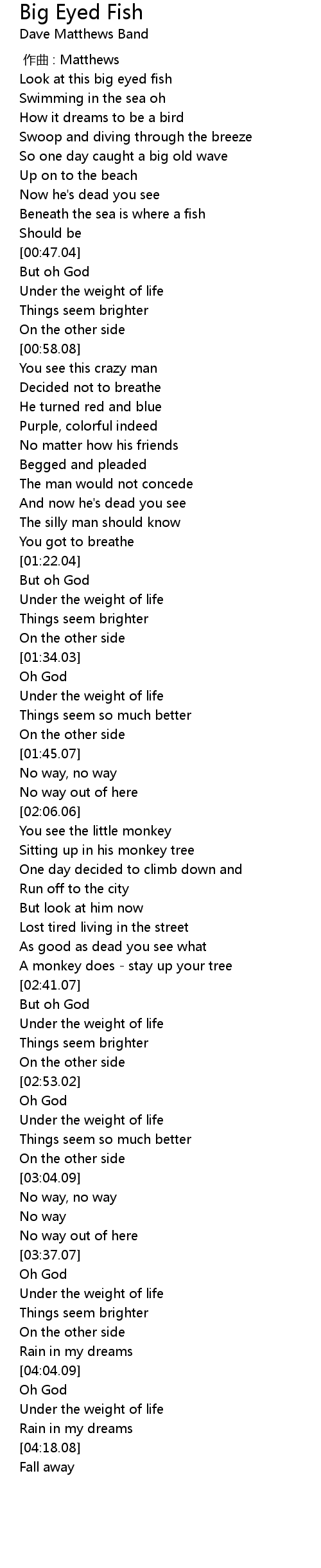 | 歌曲 | Big Eyed Fish |