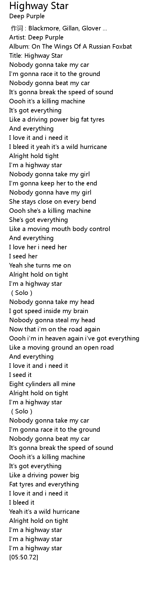 | [01:48.00] | I'm a highway star |