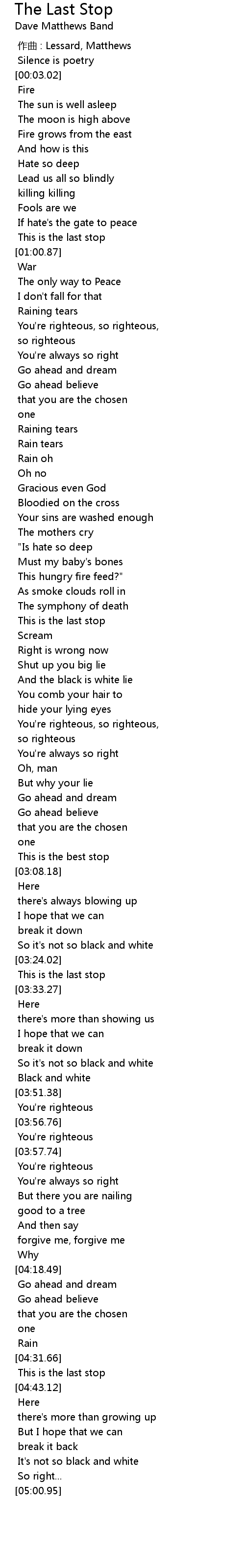 | [00:58.00] | This is the last stop |