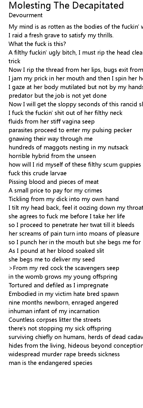 A filthy fuckin' ugly bitch, I must rip the head clean off this scabby dead |