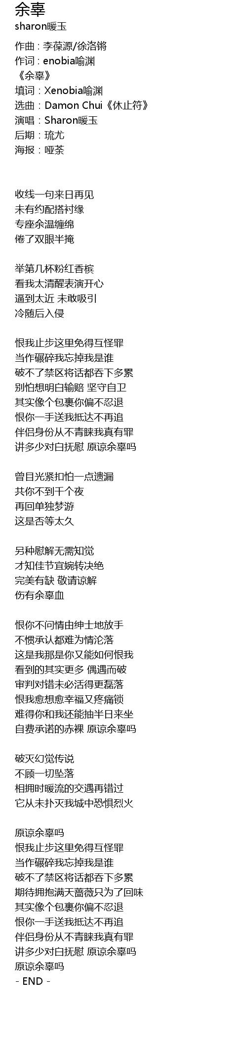 | 作词 : enobia喻渊 | |