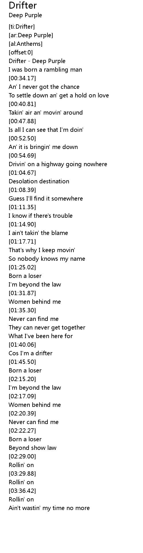 [00:00.34] Drifter - Deep Purple