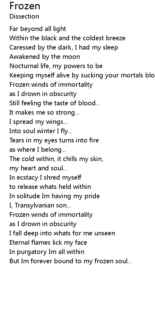 But Im forever bound to my frozen soul...