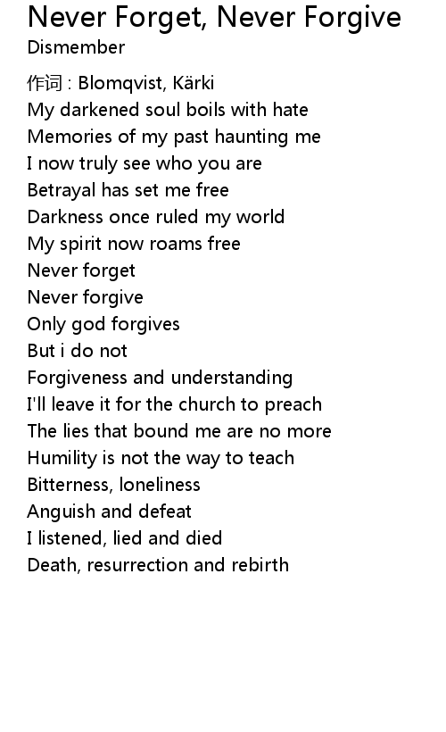 | 歌曲 | Never Forget, Never Forgive |