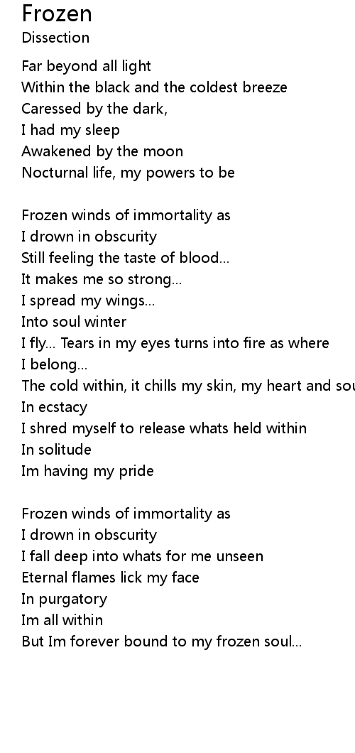 But Im forever bound to my frozen soul...