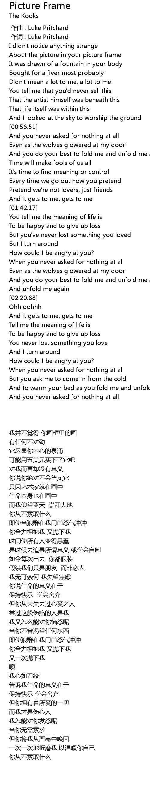 | [00:01.000] | zuo ci : Luke Pritchard |