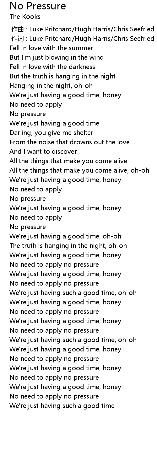 | [00:01.000] | 作词 : Luke Pritchard/Hugh Harris/Chris Seefried |