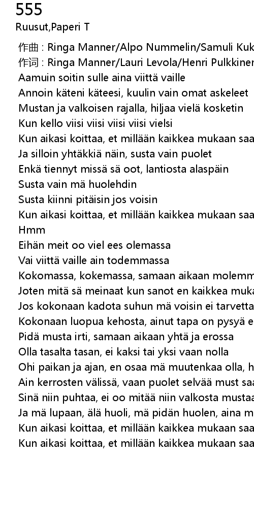 | [00:00.000] | zuo qu : Ringa Manner Alpo Nummelin Samuli Kukkola Miikka Koivisto |