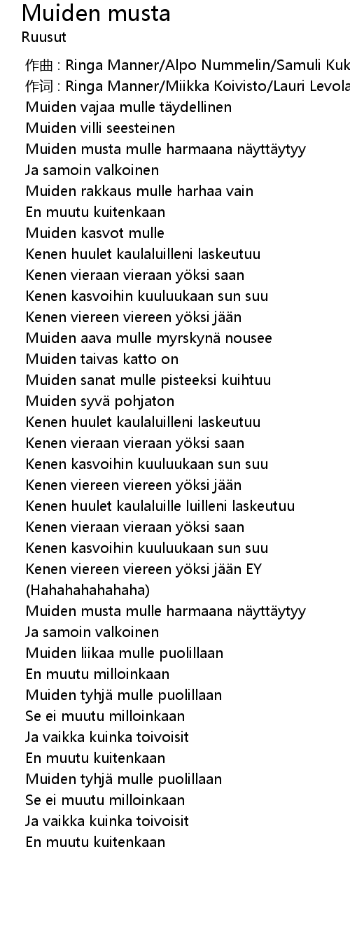 | [02:24.078] | Muiden musta mulle harmaana n ytt ytyy |