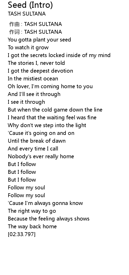 | [00:01.000] | zuò cí : TASH SULTANA |