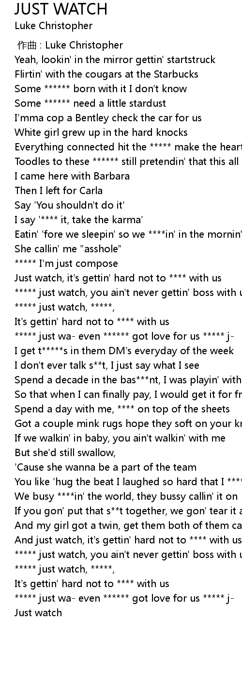 | [00:55.88] | ***** just wa- even ****** got love for us ***** j- |