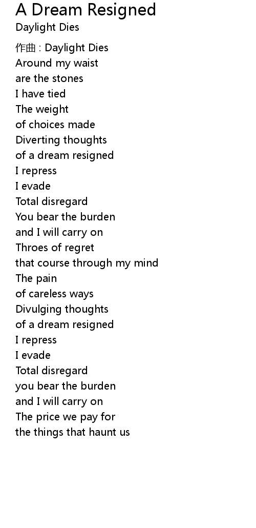 | 歌曲 | A Dream Resigned |