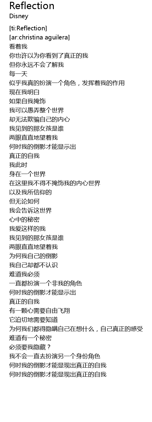 | [02:58.29] | 何时我的倒影才能显现出真正的自我 |