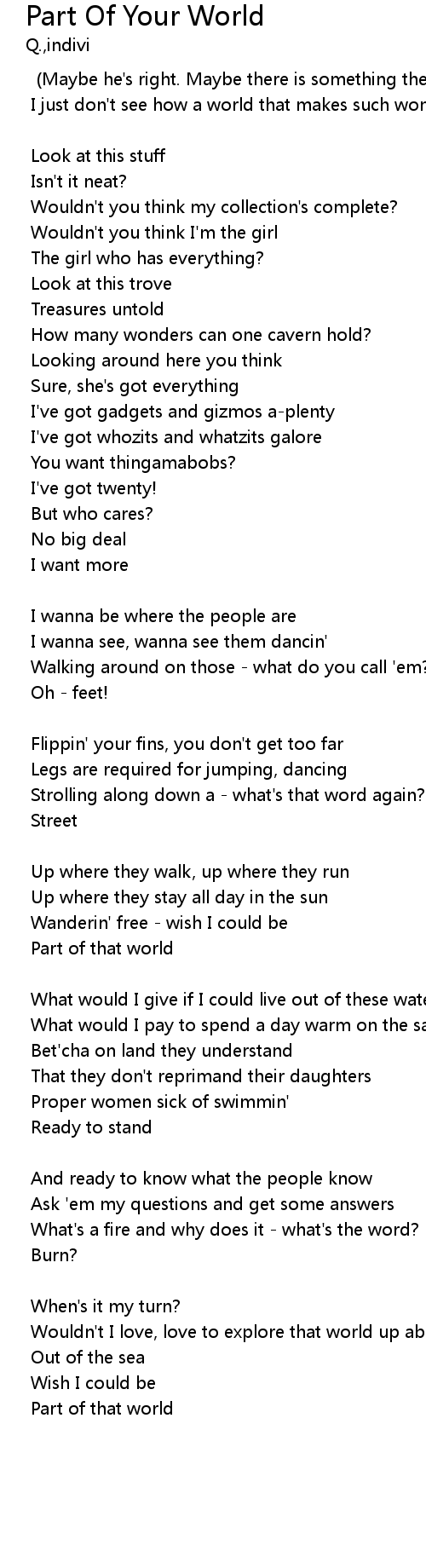 Wouldn't I love, love to explore that world up above? |