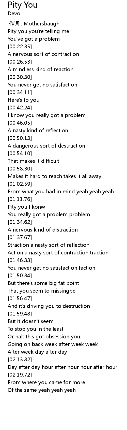 | [00:17.73] | Pity you you're telling me |