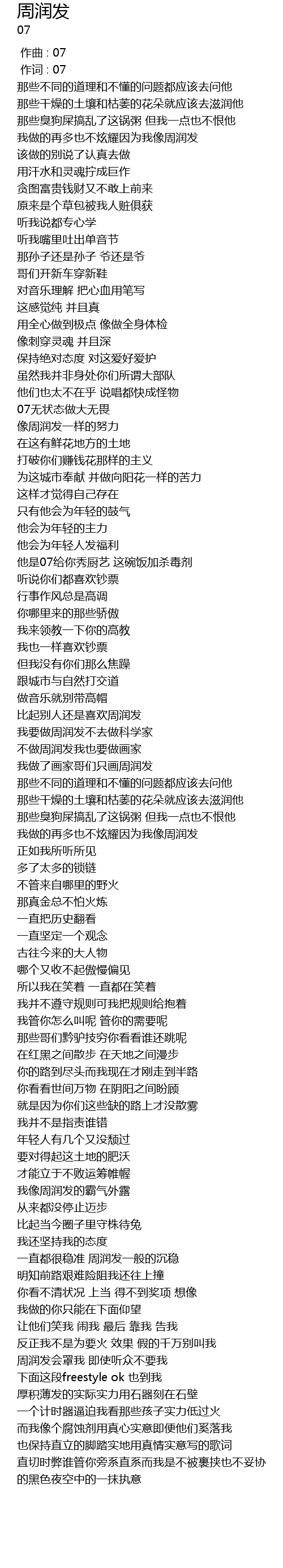 | [00:01.000] | 作词 : 07 |