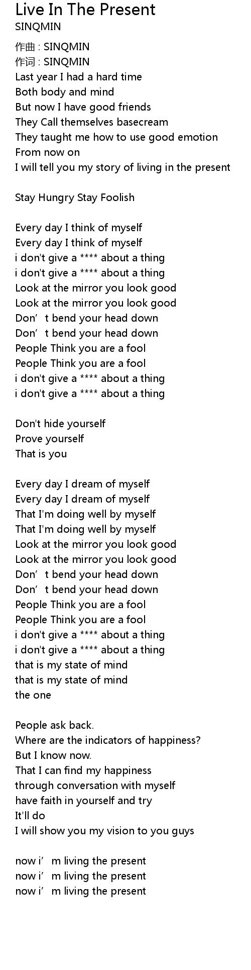 | now i' m living the present |