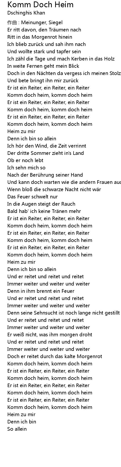 | Doch in den N chten da vergess ich meinen Stolz | |