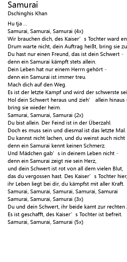| denn ein Samurai zeigt nie sein Herz, | |