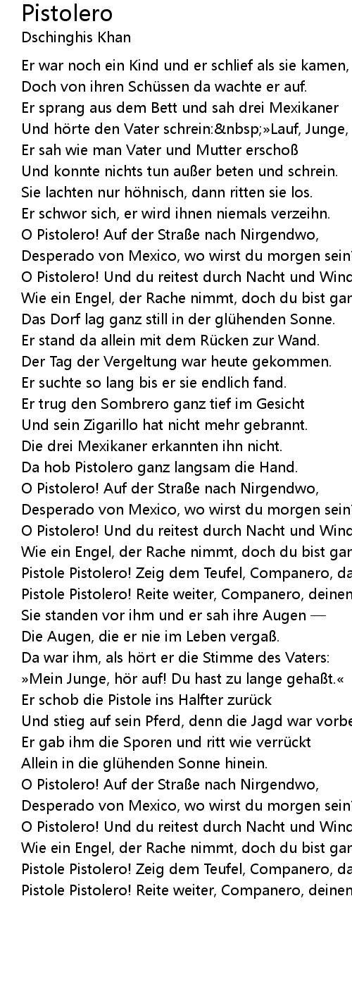 | O Pistolero! Und du reitest durch Nacht und Wind | |